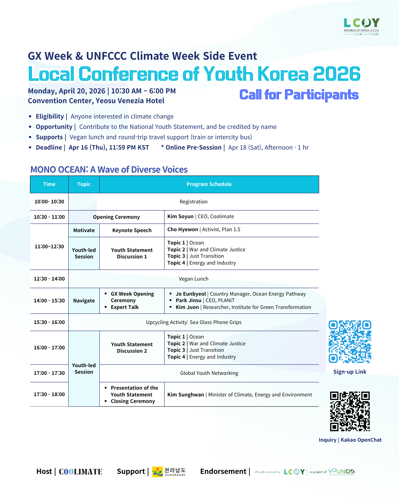 걱정하지 마세요! LCOY는 기후변화에 관심 있는 청년 누구에게나 열려 있습니다🤗