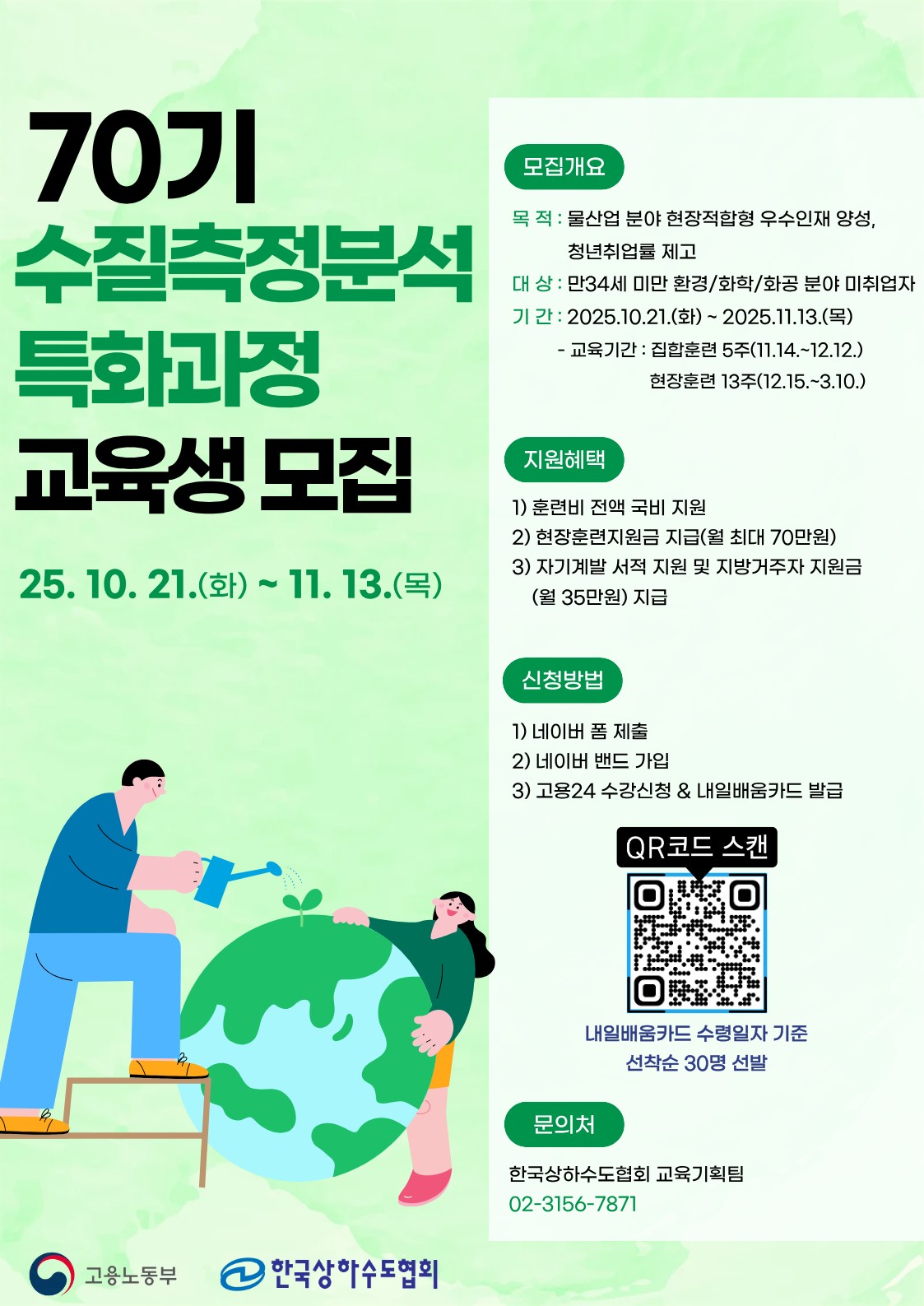 - 교 육: 수질측정분석 집체 이론교육(11.14~12.12) + 현장실습(12.15~'26.3.10)