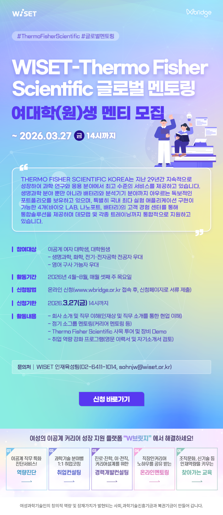 라. 문의처 : WISET 인재육성팀(02-6411-1014, 1046)