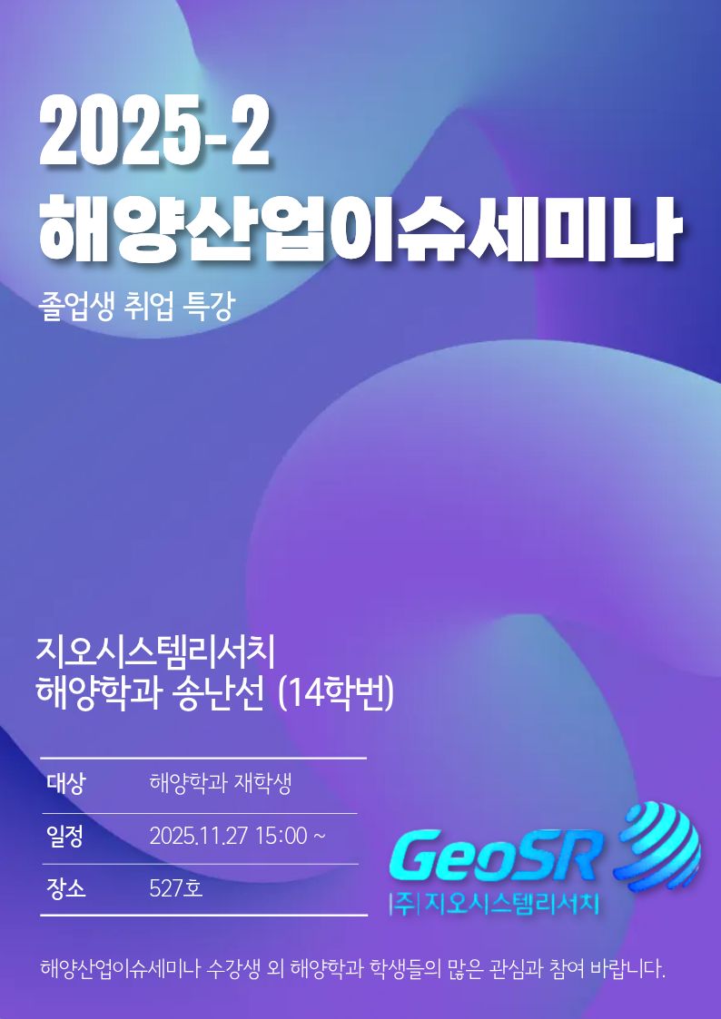 2025-2 해양산업이슈세미나 : 졸업생 취업 특강 #2 지오시스템리서치 해양학과 송난선 14학번 (25.11.27)